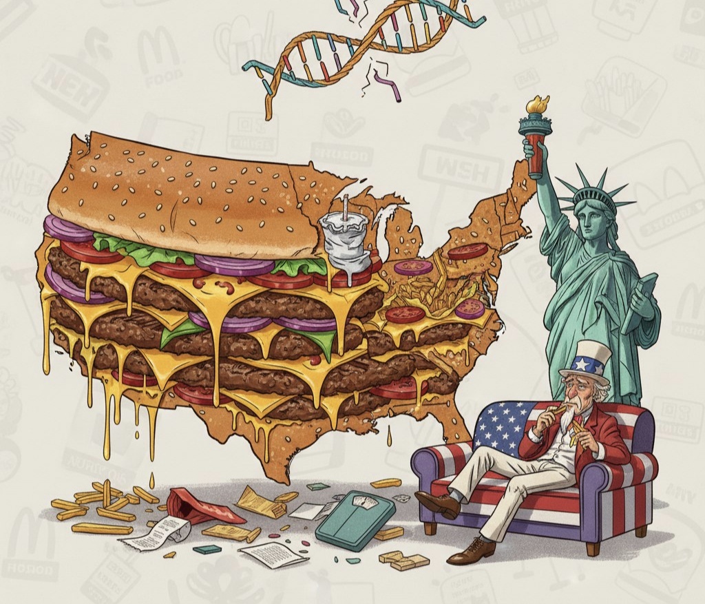 Давайте начистоту: проблема лишнего веса — это не только американская история. Наш Минздрав тоже бьёт тревогу. По разным оценкам, от избыточного веса и ожирения страдают треть россиян, и эта цифра вызывает обоснованную тревогу. Однако когда мы говорим об ожирении как о национальной эпидемии, все взгляды обращаются к США. Здесь статистика переходит все границы. Каждый второй взрослый американец имеет степень ожирения. Почти каждый десятый (9.4%) страдает уже тяжёлой формой ожирения. Это не отдельная болезнь, это системный сбой целой цивилизации. Почему в США так много людей с ожирением? Проблема не в отсутствии силы воли у миллионов людей, а в окружающей среде, которую можно назвать «жирогенной». Американская экономика построена на массовом потреблении, и еда — главный двигатель. Огромные порции в ресторанах, газировка литрами, дешёвые полуфабрикаты, насыщенные сахаром, солью и трансжирами, стали нормой. Супермаркеты вроде Costco культивируют покупку «оптом»: гигантские упаковки чи