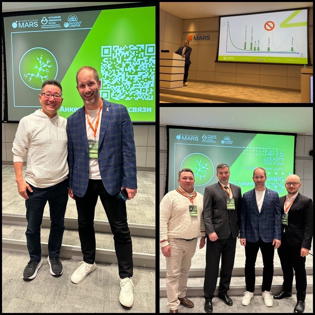 САММИТ ПО ЛИМФАТИЧЕСКОЙ ХИРУРГИИ Дорогие друзья! Сегодня в Москве завершил свою работу первый в России саммит по лимфатической хирургии — по-настоящему знаковое событие для профессионального медицинского сообщества. Организаторами саммита выступили Olimp Clinic MARS и проект PhysioLympha при поддержке Ассоциации лимфологов России. Мероприятие объединило ведущих лимфатических хирургов России, а также признанных международных экспертов из Японии, Германии и Южной Кореи. На фото — я вместе с одним из ведущих мировых лимфохирургов Joon Pio Hong и выдающимися российскими специалистами: Фейсхановым Айгизом Камилевичем, Медведевым Германом Владимировичем и Соломицким Денисом Николаевичем (слева направо). Саммит стал уникальной площадкой для профессионального диалога между признанными экспертами в области лечения лимфедемы и врачами, которые только планируют начать работу с пациентами, страдающими лимфатическими отёками. Отдельную благодарность хочу выразить организаторам и лично Саутин