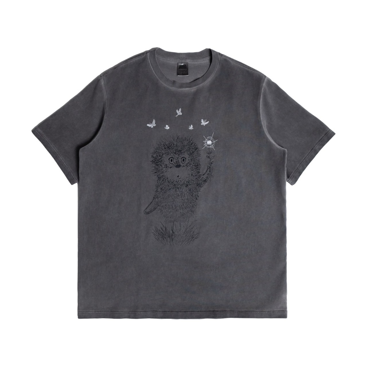 Футболка "Ёжик в тумане" в коллаборации с Союзмультфильмом. Для пошива брали кулирную гладь плотностью 300 г/м2. Окрашивали методом garment dye. И затем на готовых изделиях делали ВЫШИВКУ иллюстрации и логотипа. Ссылка на карточку товара. Внимательно подберите нужный размер, из-за окрашивания изделий произошла усадка. На фото Никита (179 рост, вес 77) в размере L.