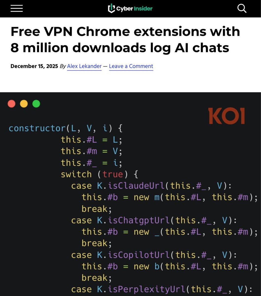 Популярные расширения содержат скрытые скрипты, ворующие диалоги в ChatGPT, Claude и Gemini