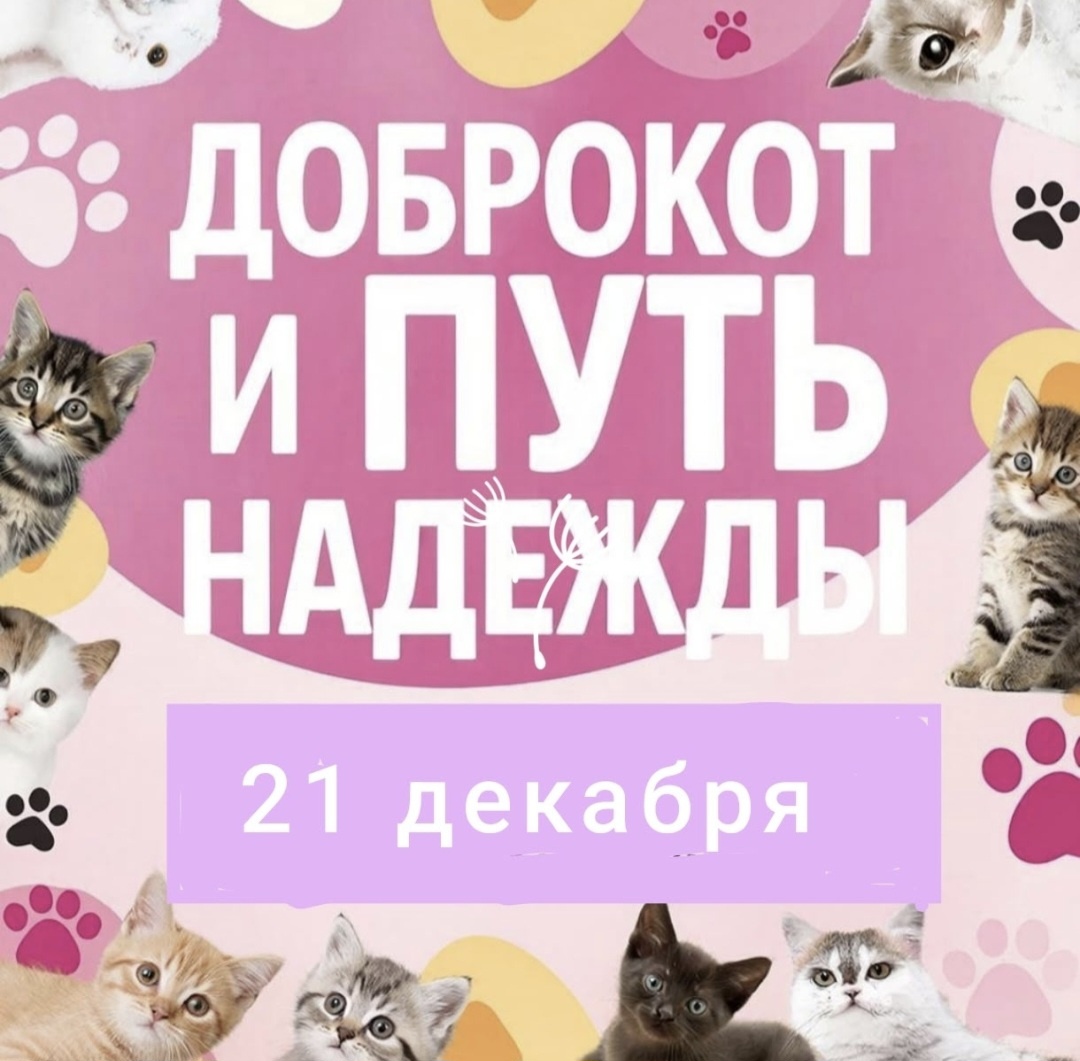 🎯 Дорогие друзья! 📍 Напоминаем, что 21 декабря состоится долгожданное событие: 🌟 Ярмарка Доброкот и Выставка Путь надежды! 🎀 На мероприятии вы сможете: Полюбоваться пушистыми красавицами и красавцами. Ознакомиться с информацией о приютах для животных. Приобрести оригинальные изделия ручной работы и полезные вещи для домашних питомцев и не только. 📆 Запланируйте посещение! 🌟 Присоединяйтесь к атмосфере добра и тепла вместе с нами! Мы находимся в Санкт-Петербурге