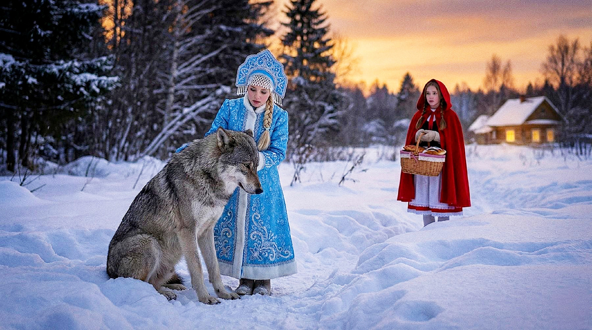 Новогодняя сказка про Снегурочку, Серого Волка, Красную Шапочку и Бабушку.