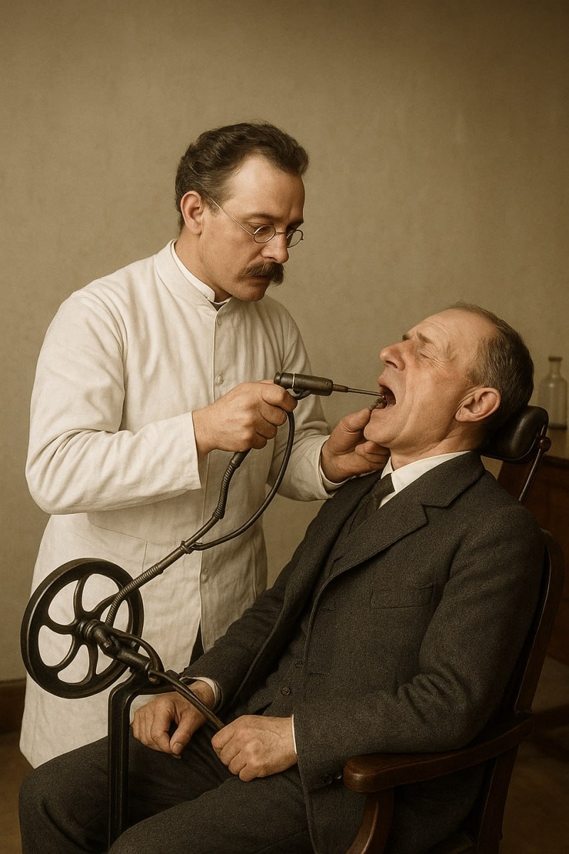 🦷 Интересный факт из истории стоматологии В 1870-х годах лечение зубов вышло на новый уровень — процесс впервые механизировали. Именно тогда появилась ножная бормашина, которую стоматолог приводил в действие с помощью педали, как у старинной швейной машины. До этого врачи пользовались ручными инструментами, но они были медленными и неудобными. Ножная бормашина позволила работать точнее и быстрее, став настоящим прорывом своего времени и важным шагом к современным технологиям лечения зубов. 📱 OMCIP | Чисто по зубам