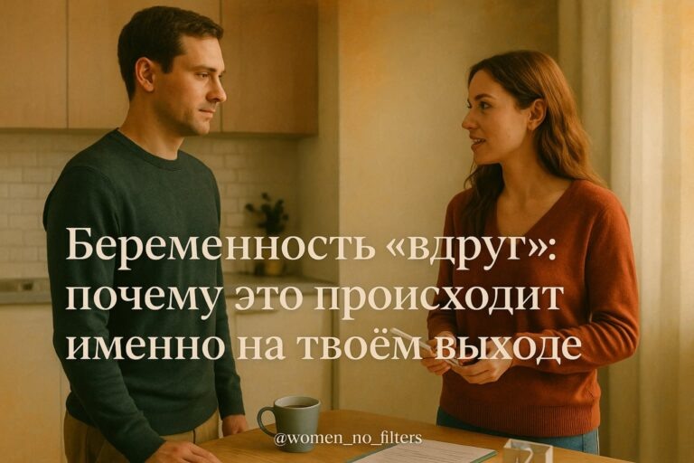 И тут — новость, от которой у многих внутри выключается разум: беременность. И вот первая ловушка: ты боишься выглядеть “плохим”.