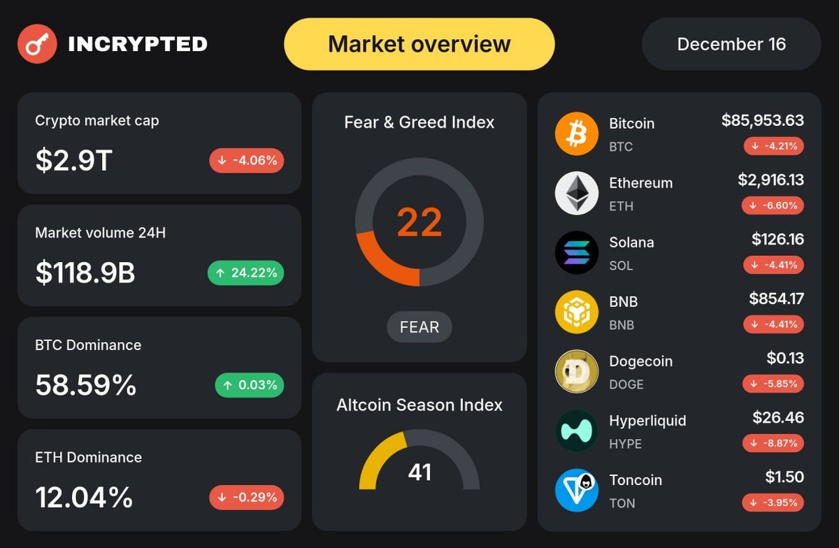 - Капитализация рынка ≈$2.9T (-4.06%)