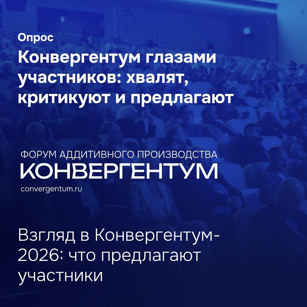 Взгляд в Конвергентум-2026: что предлагают участники Подавляющее большинство респондентов планирует участие в следующем Конвергентуме. При этом они высказали ряд конструктивных предложений как по повестке, так и по организации форума. Главный тренд — запрос на большую специализацию и глубину. Алексей Адамцевич, например, предлагает повысить статус строительной тематики: «Круглый стол логично преобразовать в полноформатную стратегическую сессию или даже в отдельный трек по применению аддитивных технологий в строительстве». Олег Лысак подсказывает сделать акцент на роли малого и среднего бизнеса и вопросах гибридного производства. А также советует: «Можно пробовать на будущее делать «проблемный» доклад от модератора и дальше дискуссия вокруг него». Гарегин Асланян видит потенциал в отдельной тематике по машинному обучению и искусственному интеллекту в АТ. По организации тоже были пожелания. Игорь Пчелинцев из ООО «Ретех» сказал следующее: «Я бы делал больший акцент на оформление сами
