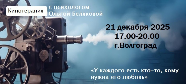 🎥Вы когда-нибудь решали свои личные проблемы через просмотр фильмов? Как думаете, кинотерапия способствует личностному росту и самопознанию? Помогает ли просмотр киноленты глубже понять свои чувства, мысли и поведение? ✔️Трижды ДА, потому что мы смотрим кино не столько ради сюжета, сколько ради осознания себя, своих ситуаций и ищем способы изменить или принять свою жизнь. Приглашаю Вас на просмотр и обсуждение терапевтического фильма в формате «Кинотерапия с психологом». - Бережная обстановка, - Эмпатичная группа, - Профессиональное сопровождение дадут возможность высказаться в группе без осуждения, услышать другие мнения, по-новому взглянуть на свою ситуацию, получить поддержку психолога и группы, и конечно, интересно провести самый длинный вечер в году. 🗓21 декабря 2025, 17.00-20.00 г. Волгоград, ул. Коммунальная, 14, офис 14 Группа 4-8 человек. Подробности и регистрация в личку. С уважением, ❤️Психолог Ольга Белякова