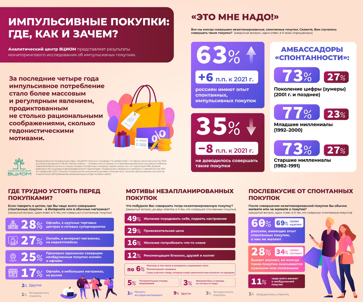 Почти две трети россиян имеют опыт спонтанных покупок.