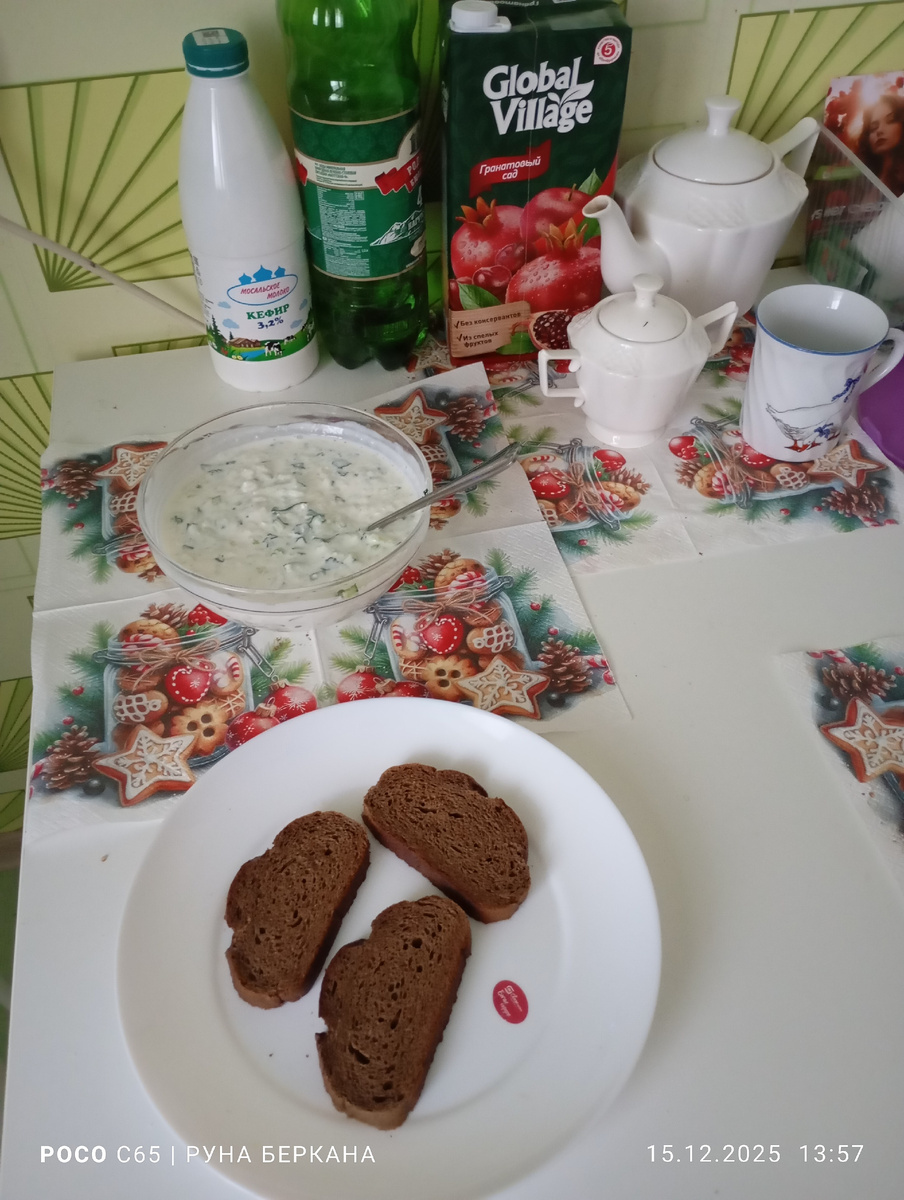 Мой ужин: рис приготовлен на пару, яйцо сварено в крутую, зелень: петрушка, укроп, зелёный лук, огурец, без соли, кефир, хлеб ржаной.