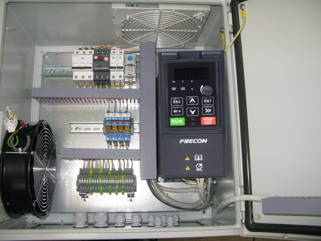 Был разработан и поставлен шкаф управления с частотным преобразователем FRECON FR150A. Решение позволило: ✓ Осуществлять плавный пуск и остановку приводов, полностью исключив ударные нагрузки. ✓ Точную регулировку скорости в диапазоне 5–50 Гц для синхронизации с другими этапами технологического процесса. ✓ Дистанционное управление с главного пульта и местное со шкафа. Результат: Снижение брака: Обрывы материала устранены на 99%. Энергоэффективность: Потребление электроэнергии двигателями снижено на 15% за счет оптимизации режима работы. Надежность: Увеличился межремонтный период механических компонентов (редукторов, подшипников). Гибкость: Операторы получили возможность быстро адаптировать скорость линии под разные марки металл