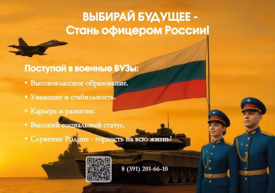 ! Военное образование в России — это не только подготовка офицеров боевых подразделений. Современные военные вузы выпускают специалистов самого разного профиля: от военных летчиков и картографов до переводчиков, журналистов и даже музыкантов. Особенность в том, что помимо фундаментальных дисциплин по специальности, все курсанты изучают военные дисциплины. Например, будущие переводчики осваивают военную лексику, а врачи — особенности полевой медицины. Одно из главных преимуществ военного образования — оно полностью бесплатное для тех, кто проходит по конкурсу. Более того, курсанты получают денежное довольствие, которое существенно выше обычной студенческой стипендии. После выпуска офицеры могут рассчитывать на: - Стабильное денежное довольствие (выше средней зарплаты по стране) - Гарантированное трудоустройство и стабильную карьеру - Льготную выслугу лет - Государственное жильё - Ранний выход на пенсию - Льготы и другие социальные гарантии Узнать более подробную информацию об условия