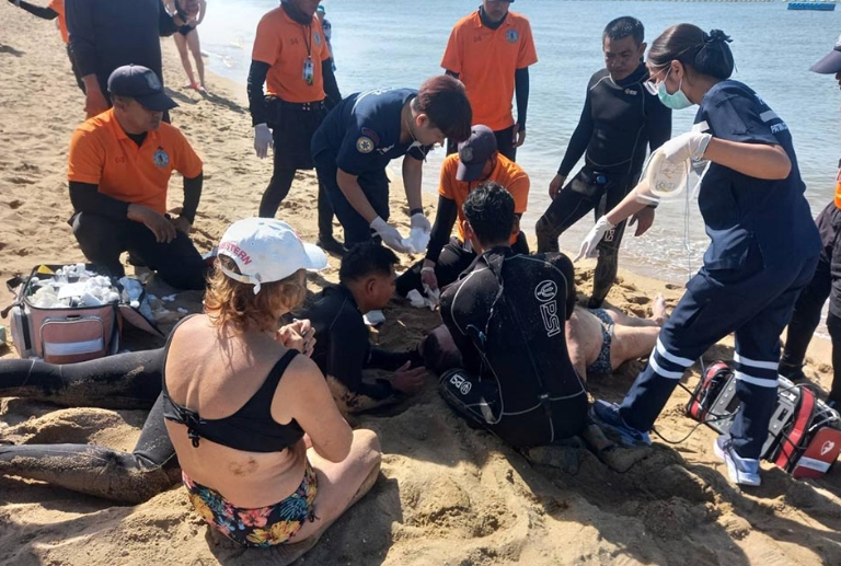 Хорошие новости! Вчера на пляже Джомтьен сотрудники спасли российского туриста, который чуть не утонул. Оперативная работа муниципальной полиции, морских спасателей и медиков предотвратила трагедию! Турист был обнаружен в воде в состоянии стресса недалеко от Сой 16. Ему оказали первую помощь на месте и доставили в больницу. Жена сопровождала его.