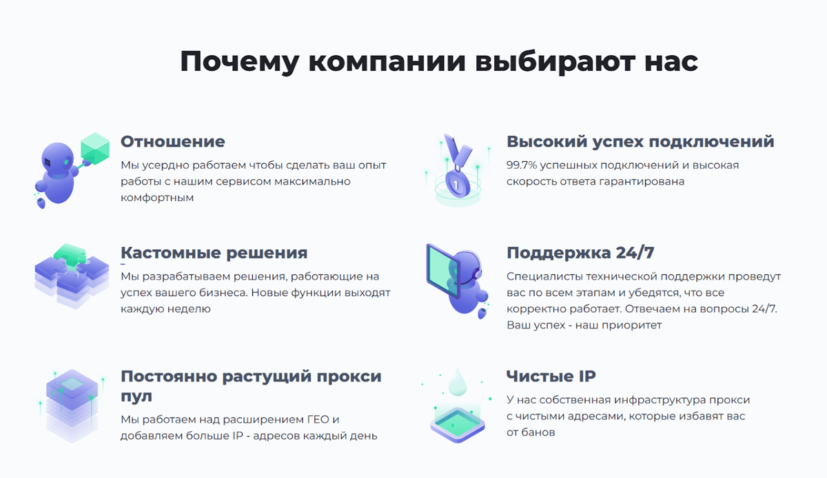 Proxy6 — предоставляет резидентные IP-адреса домашних пользователей конкретных интернет-прoвайдеров. Ключевая особенность — возможность долгосрочной аренды конкретного «чистого» адреса с историей.