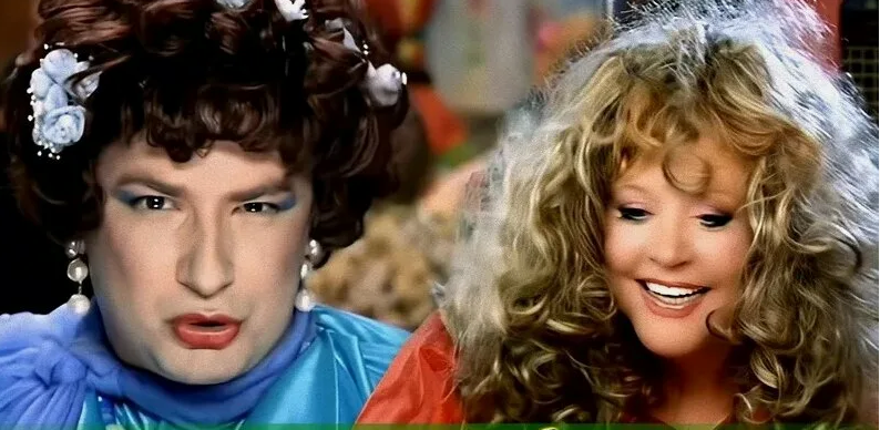 Все музыкальные фильмы снятые с участием этого актера имеют "эффект взорвавшийся бомбы".Не зря есть мнение, что лучше всего женщину может сыграть только мужчина.Только посмотрите на этот образ. На худых ногах лосины, а живот-барабан прикрывает мужская толстовка.