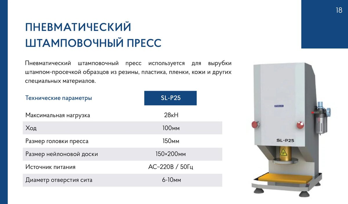 Пневматический штамповочный пресс используется для вырубки штампом-просечкой образцов из резины, пластика, пленки, кожи и других специальных материалов. Компания Лаблинк специализируется на продаже высокопроизводительного испытательного оборудования STARLINK. Мы стремимся предоставлять нашим клиентам точные и надежные приборы для тестирования и профессиональные технические решения. Наша основная продукция – это оборудование для испытаний труб и геотехническое испытательное оборудование, которое широко используется для контроля качества готовой продукции и анализа материалов в различных областях, таких как производство строительных материалов, производство пластмасс, химическая промышленность, пищевая промышленность, фармацевтика и т. д. Выбирая компанию Лаблинк, Вы получите следующие преимущества: 1. Индивидуальную настройку продукта в соответствии с вашими конкретными потребностями 2. Строгий контроль качества 3. Комплексную поддержку: от предпродажных консультаций до послепродажно
