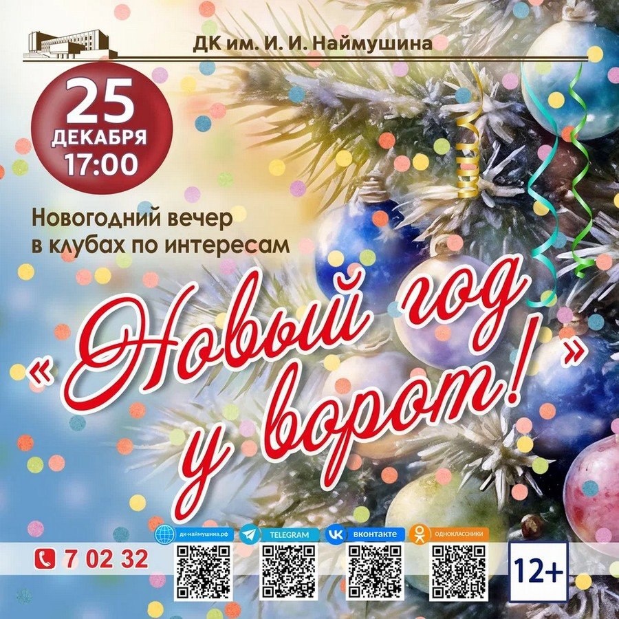 Секретное сообщение! Предновогоднее путешествие по дороге зимней сказки уже ждёт сигнала к началу! В числе самых первых его участников – жители старшего поколения нашего города. 25 декабря они встретятся во Дворце культуры имени И. И. Наймушина на вечере отдыха и чудес. Стало известно, что на это событие прибудут самый главный новогодний волшебник Дед Мороз и его внучка Снегурочка. Не говори никому: 25 декабря, 17:00. Время верить в чудеса начинается!