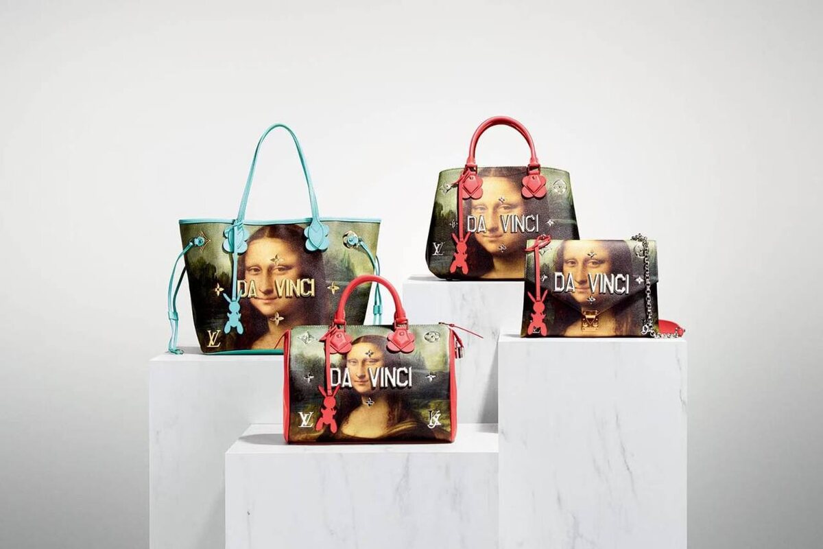 Как вам такие коллаборации? Louis Vuitton создали с одним из самых дорогих художником Джеффом Кунс коллекцию сумок по мотивам известных картин. Была создана линия ограниченной серии «Masters». Традиционные модели Louis Vuitton получили новое прочтение как китчевые арт-объекты: поверх репродукций да Винчи, Ван Гога и Рубенса.