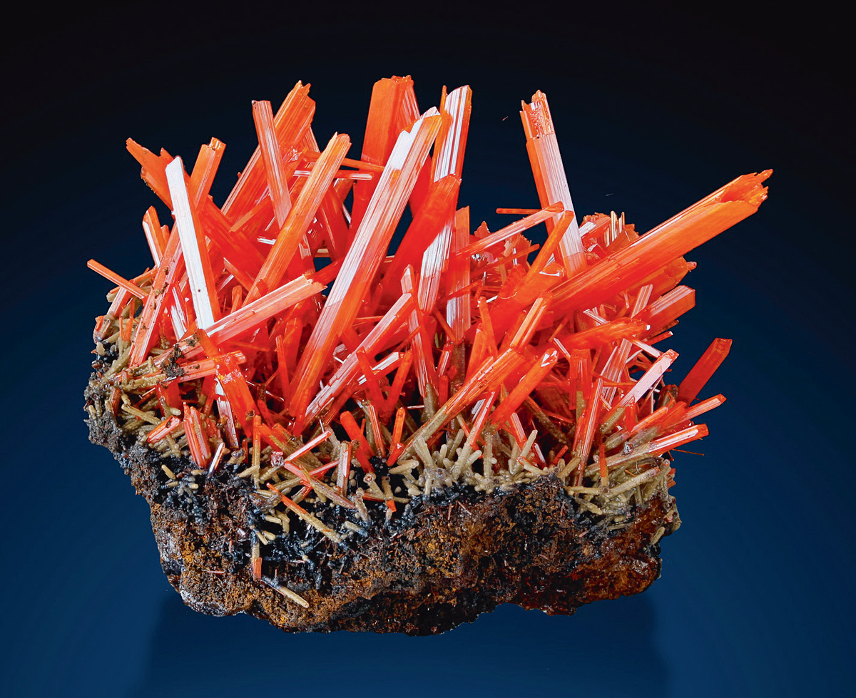Крокоит (красная свинцовая руда) – минерал класса природных хроматов, хромат свинца островного строения. Название произошло от греческого слова «кронос» – «шафран» – из-за сходства по цвету. Впервые обнаружен в 1766 году в окрестностях Екатеринбурга (Березовский золотой рудник) и описан горным советником Иоганном Готлобом Леманом. Декоративные сростки и друзы кристаллов крокоита – ценный коллекционный материал. Биоэнергетики утверждают, что минерал оттенков шафрана имеет особые мистические свойства: влияет на сознание человека, помогает выстроить позитивный вектор, определиться, в каком направлении двигаться.В прошлом астрологи и чародеи использовали крокоит как атрибут предсказания. Считалось, что кристаллы минерала открывают истину. Внешний вид: кристаллы призматические, столбчатые, игольчатые, реже плотные агрегаты. Образует отдельные призматические кристаллы, кристаллические сростки и друзы в пустотах, а также рыхлые мелкокристаллические агрегаты, заполняющие мелкие трещины. ФИЗ