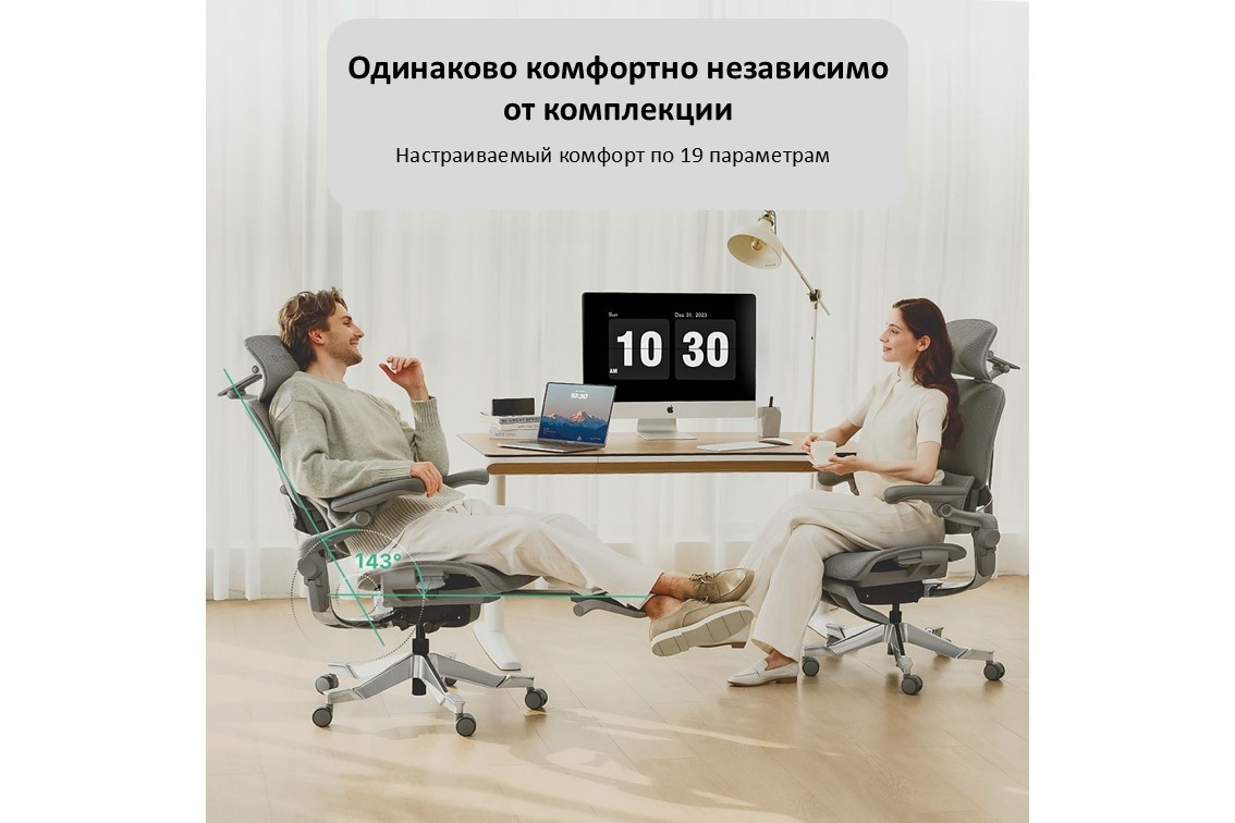 H2 PRO предлагает потрясающий комфорт как в процессе работы за компьютером так и во время досуга. Уникальная поддержка спины с выдвигающимися и отклоняющимися элементами, которые подстроятся под конфигурацию любого пользователя ростом от 155 до 200см. Кресло умеет складываться пополам и тем самым экономить пространство. Адаптивная поддержка спины Спинка полностью адаптируется под пользователя. Предусмотрена регулировка спинки и поясничного упора не только по высоте, но по глубине. Поясничный упор поднимается вверх на 3см и регулируется вперед/назад на 2,5см. Предусмотрена возможность наклона спинки вперед на 10 градусов, а также наклона сиденья вперед на 2,5 градуса. Подголовник Предусмотрена возможность наклона спинки вперед на 10 градусов, а также наклона сиденья вперед на 2,5 градуса. Подлокотники Подлокотники с двухосевым вращением и изменением угла наклона.