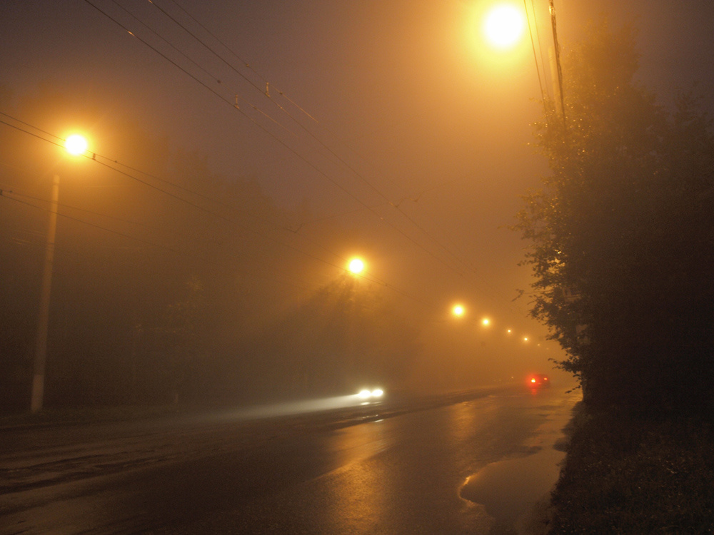На канале «Русская глубинка» не публикую материалов, касающихся моего родного города Иваново, поскольку это не вписывается в заявленную тематику. Фотографии по Иванову выложены на персональном фотосайте "Иваново-Вознесенскъ и его окрестности". Но одно исключение решил сделать. История, о которой расскажу, случилась довольно давно в начале сентября в 2008 г. Встал я в тот день очень рано. Помню, что собирался выехать за город на природу. Но когда вышел на улицу, оказался в густейшем тумане. "Туманный Альбион", как говорится, отдыхает. Пока шёл по городу в гараж за машиной, делал кадры с туманом. Тогда еще не было светодиодных источников, и фонари светили теплым красновато-оранжевым светом. Не было еще и пяти утра. На остановке молодые люди разжились в ларьке чем-то жидким (тогда еще существовала мода устраивать ларьки на остановках), и поочередно утоляли жажду после, вероятно, бурно проведенной ночи. Когда сел в машину, планы поменял - решил остаться в городе и поснимать туманные виды.