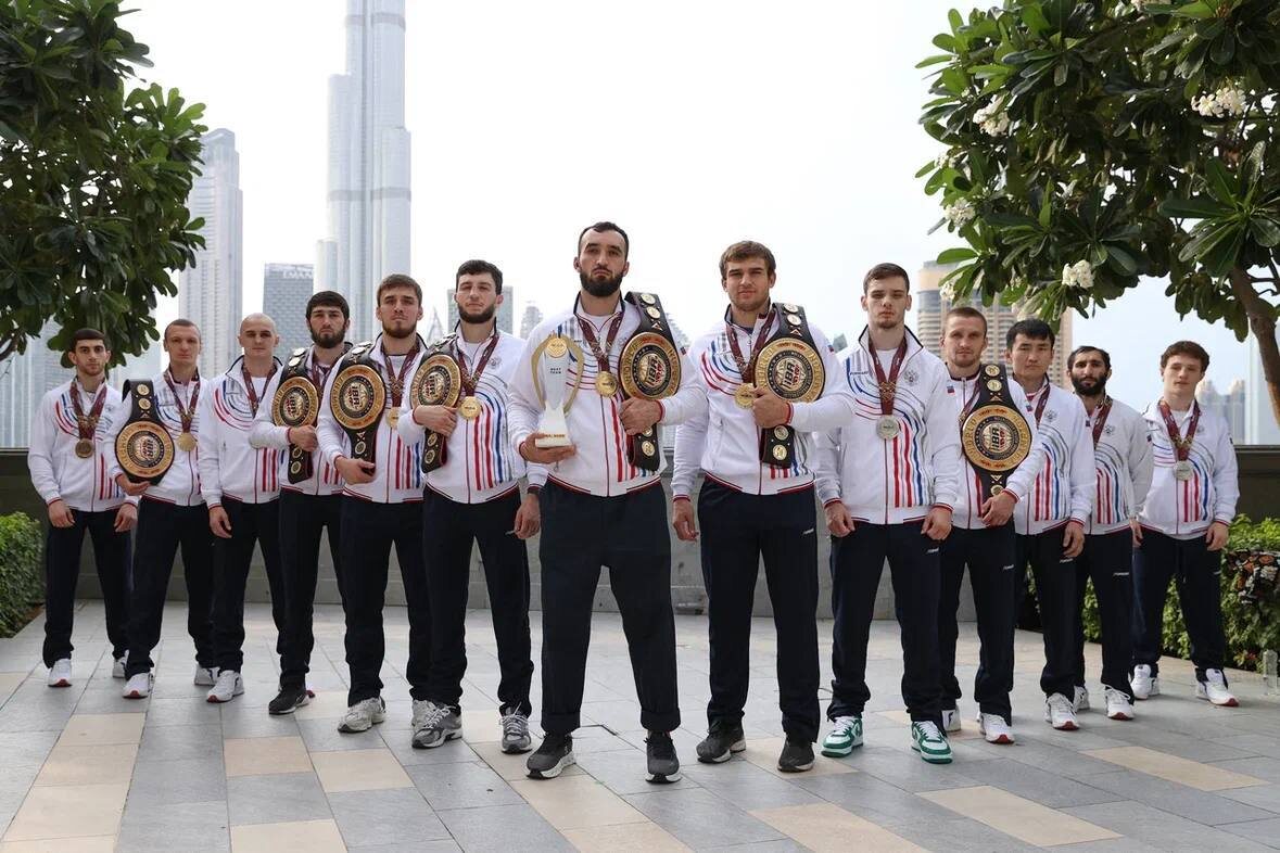 Привет, друзья! 🥊 **Путин поздравил российских боксеров с завоеванием золотых медалей на ЧМ** «Сильный и волевой характер, мастерство и отличная подготовка стали главными слагаемыми вашего успеха, позволили вам одолеть в честных поединках достойных соперников, подняться на высшую ступень пьедестала почета. И конечно, поздравляю всю нашу сборную с победой в общекомандном зачете», — говорится в послании президента России на сайте Кремля. Золотые награды в Дубае завоевали Всеволод Шумков, Илья Попов, Исмаил Муцольгов, Джамбулат Бижамов, Шарабутдин Атаев, Муслим Гаджимагомедов и Давид Суров. (https://max.ru/sportrian)