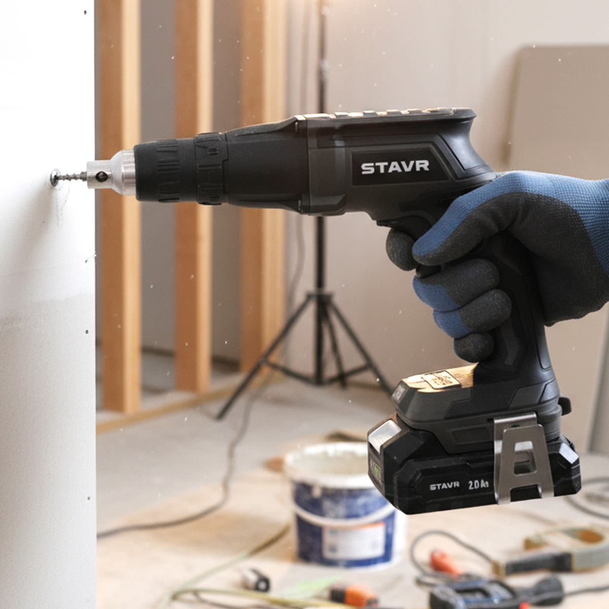 🙌 SDS 18BL: эксперт в гипсокартоне 👨🎓 Бренд STAVR представляет инструмент, созданный для безупречного и быстрого монтажа гипсокартона. Новый аккумуляторный шуруповёрт SDS 18BL — это не просто универсальный помощник, а инженерное решение, которое автоматизирует такую ответственную часть работы как точное и аккуратное закручивание самореза. Регулировка глубины заворачивания в паре с интеллектуальным режимом автостопа гарантирует, что шляпка самореза всегда будет утоплена идеально — не порвав картон и не выступив над поверхностью. Это сводит к нулю брак и последующую трудоёмкую шпаклёвку. Функция «PUSH DRIVE» (автозапуск при подаче нажатием) и эргономичный обхват корпуса превращают массовое закручивание в быстрый и не утомляющий процесс, а мощная нижняя подсветка обеспечивает чёткую видимость даже в углах и под потолком. Бесщёточный BL-мотор обеспечивает высокий крутящий момент и исключительную долговечность при интенсивной работе. Инструмент работает в экосистеме 18V UNI-M, что озна