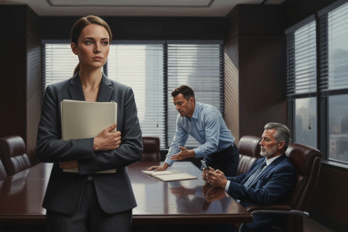 Результат предсказуем: при равной квалификации мужчины чаще получают повышения, их идеи воспринимают серьёзнее, их время автоматически считается ценным. Не потому что они объективно лучше. Потому что они не извиняются за факт своего существования.