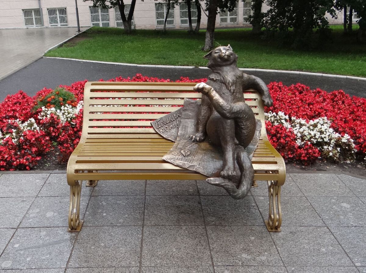 Начнем мы нашу экскурсию по монументальному Поволжью с Йошкар-Олы, столицы Республики Марий Эл, где в 2011 году появилась забавная скульптурная композиция, обыгрывающая название города. Речь о памятнике Йошкину коту, сидящему с довольным видом на скамейке в центре города. Тогда, на рубеже 2000-х и 2010-х, Йошкар-Ола радикально преобразилась: мало того, что весь центр города был фактически перестроен, так еще и по всему городу были установлены десятки различных скульптур и памятников, от Евгения Онегина и Грейс Келли до Лоренцо Медичи и Рембрандта. Вот только большинство из них скорее вызывали недоумение, а Йошкин кот прижился и стал настоящем любимцем йошкаролинцев и гостей города. А еще история кота получила продолжение: спустя пару лет в городе появилась статуя Йошкиной кошки, а совсем недавно по всей Йошкар-Оле установили мини-скульптуры Йошкиных котят.