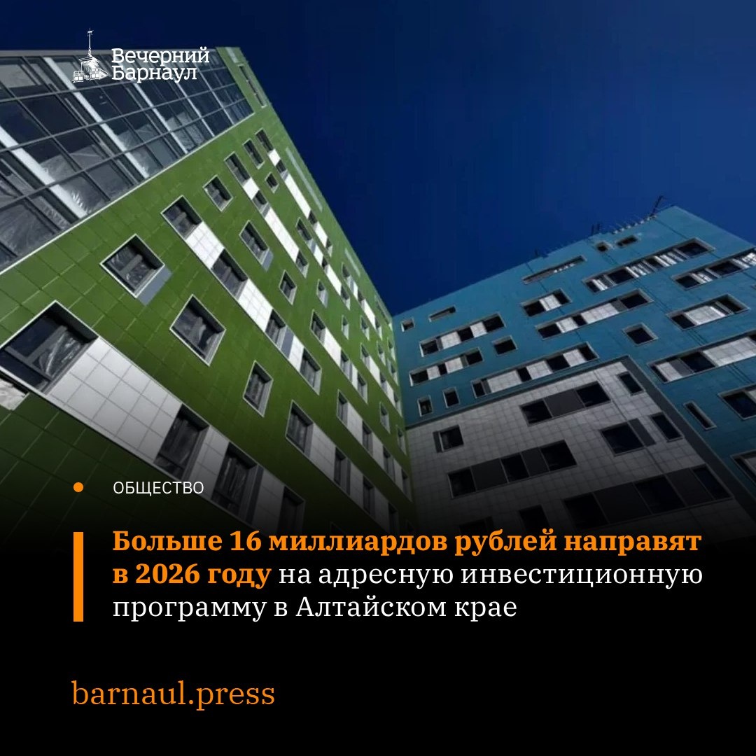 16,4 миллиарда рублей планируется направить в Алтайском крае на адресную инвестиционную программу (КАИП). Эта сумма включает средства на обеспечение жильём нуждающихся и тех, кто имеет право на государственную поддержку, в том числе детей-сирот. Об этом сообщил губернатор Алтайского края Виктор Томенко. По его словам, власти также учитывают федеральную поддержку на некоторые из проектов. Так, 7 миллиардов запланировано инвестировать в сферу образования. Продолжится строительство школы в Индустриальном районе Барнаула. В рамках КАИП планируется направить 4,5 миллиарда рублей на улучшение качества медицины. В частности, в 2026 году предстоит достроить хирургический корпус Центра охраны материнства и детства в Барнауле. Также в краевой столице продолжится строительство двух поликлиник. Подробнее на сайте. Фото: t.me/tomenko_22 📬 Подписывайтесь на наш канал в MAX @barnaul