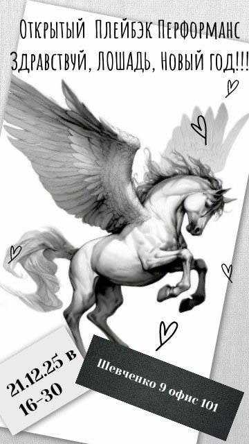 21.12.2025 воскресенье. #Екатеринбург Плейбек-театр "Под варежкой" в перформансе "Здравствуй, ЛОШАДЬ, Новый год!" Начало в 16:30 Друзья, а что если в канун праздника нам с вами немного замедлиться, выдохнуть и поговорить по душам? Мы зовём вас на доверительную встречу-импровизацию, где ваши истории станут основой для сценических миниатюр. О чём может быть ваша история? Представьте,что каждая история — это особый аллюр, особый бег. Возможно, это Тяжелая рысь между ожиданием чуда и дикой усталостью. Или... Лёгкий галоп самого первого детского чуда, которое живёт в нас до сих пор. А быть может, это Решительный шаг в неизвестность. Или знакомая многим Остановка у камня Распутья. А может, это история про выгорание, про тишину, про дорогу домой или про смех сквозь слёзы? Принесите её с собой. Это вечер, чтобы: 🐎Дать имя той силе, что везла вас этот год. 🐎Услышать эхо своей истории в других. 🐎Перевести дух перед новой дорогой. 🐎Встретить 2026 не в суете, а в осознанности и че