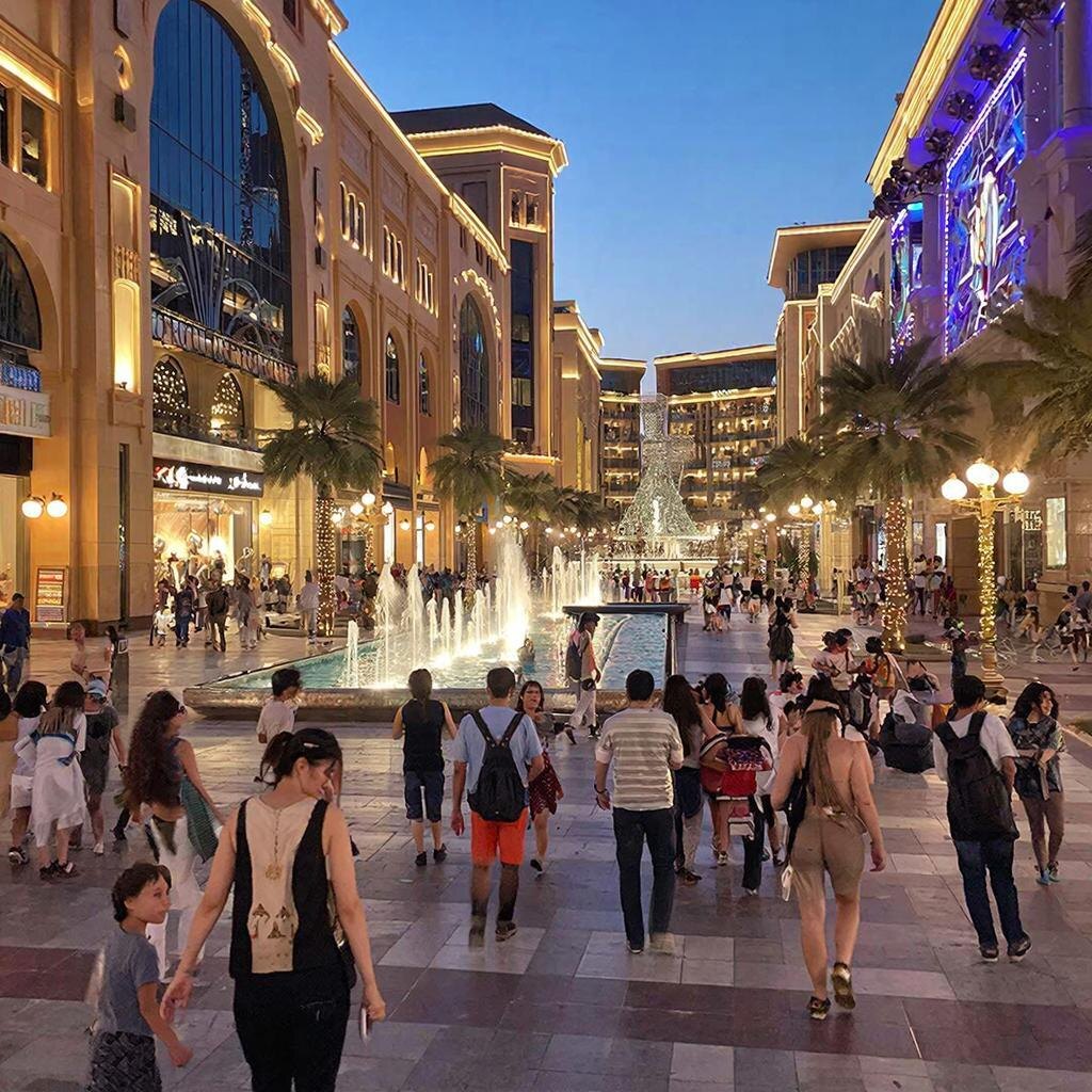 Километровая пешеходная набережная вокруг искусственного озера площадью 12 гектаров — бесплатная достопримечательность с видами на все главные объекты района. Широкие мраморные тротуары идеальны для неспешных прогулок, а вечером включается романтическая подсветка.