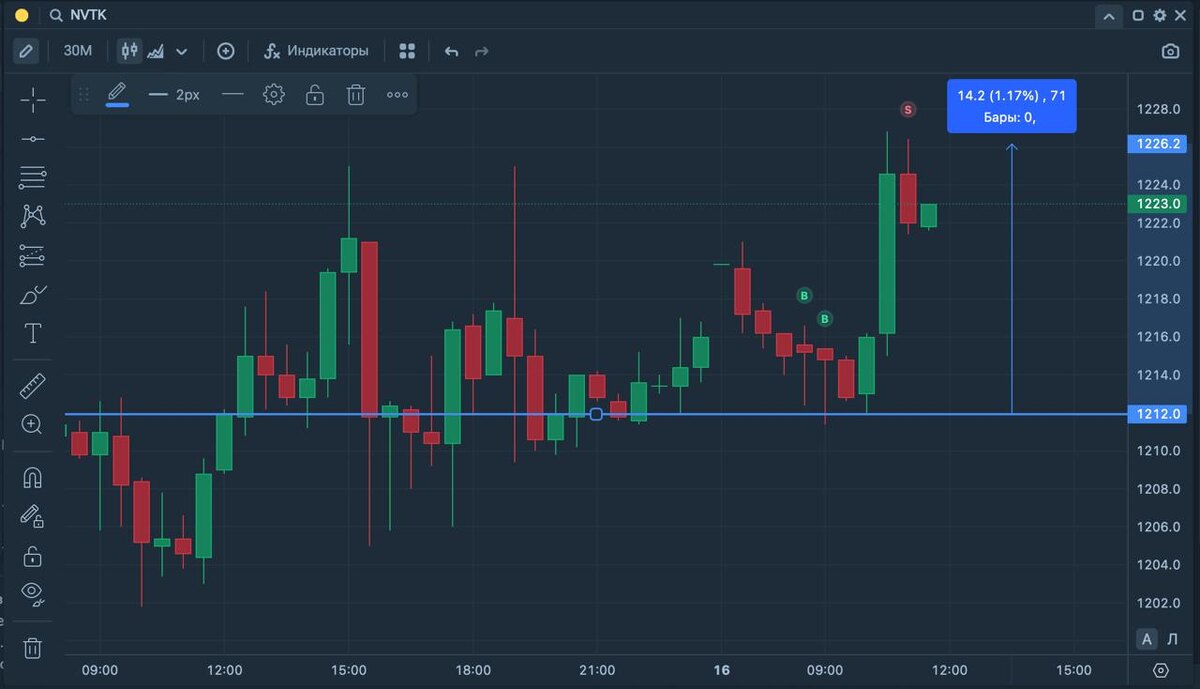 $NVTK - Лонг +1%. Отрабатывали в Базе. По мимо того, что пишу, что жду рынок выше, еще и отрабатываю это на конкретных условиях.