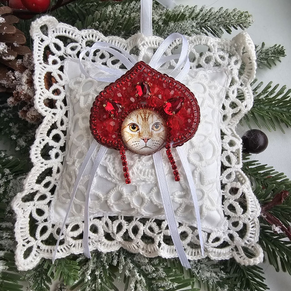 Ну и собственно она - прекрасная, несравненная, великолепная кошка-матрешка! Решила я тут коллекцию брошей создать. Да не обычную, а интересную! А раз спросом пользуется все русское, то и назвала я ее "Русские котицы"! Встречайте первую красну девицу котицу! Цаца - первая красавица на деревне! По крайней мере именно так она и считает, а потому смотрит с высока, да с легким презрением! Да и добры коты-молодцы взглядами такую красавицу провожают! Как тут не зазнаться? 🐱 P.s. На самом деле, в кокошнике она получилась в итоге менее цаца, чем когда была одна мордочка 🤣 Но все равно она прекрасна! #подарки #подарок #новыйгод #украшения #брошь #брошьручнойработы #ручнаяработа #броши #аксессуар #подароклюбимой #подарокжене #подарокподруге #подарокмаме #подароксестре #подарокучителю #кот #кошка #котики