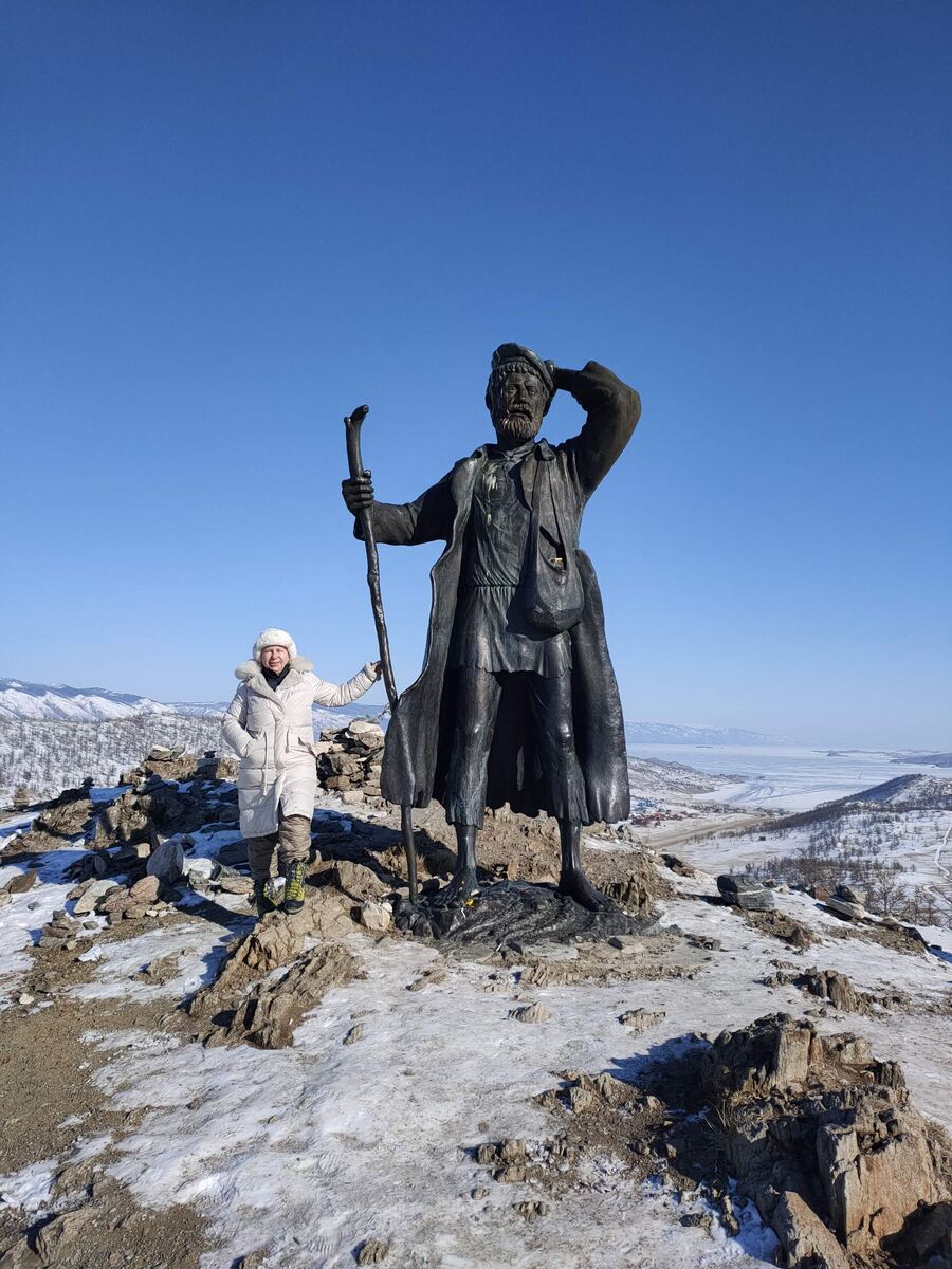 Недалеко от озера Байкал на смотровой стоит вот такой вот такая необычная скульптура. Бродяга с Байкала высотой 3, 5 м и весит 1,5 тонны. Выполнен он из бронзы и поставлен на высоту 610 м над уровнем моря по инициативе Ольхонского муниципального образования.