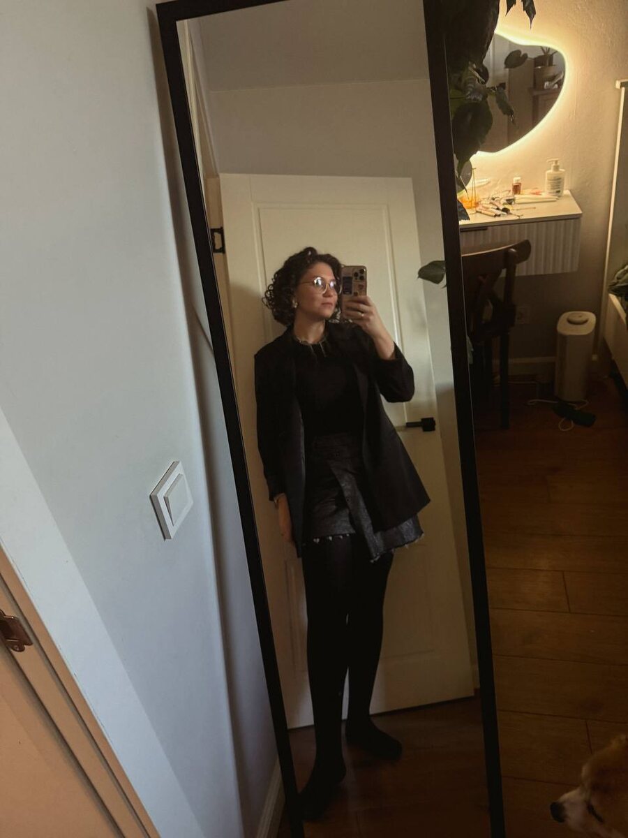 А я же вам так и не похвасталась, что дошила таки юбку #helpersew_frida из той сверкающей джинсы 🪄 Так горжусь собой, она получилась отличнейшей. Единственное - изменила длину. Прочитала в отзывах, что она получается уж больно короткой и добавила 5см к длине с расчетом на то, что если что - отрежу. Но не тут то было😁 даже с +5см она довольно таки коротенькая вышла🥸 Но все равно длина носибельна, трусами не светишь и уже хорошо 😁 Очень уж мне хотелось надеть ее на наш девичник в прошлую субботу, приуроченный к моему др, так что я прям спешила закончить) Так спешила, что забыла прошить подзор к подкладке одного из карманов 🌝 Ну и хрен с ним😁 Юбка - мечта🪄