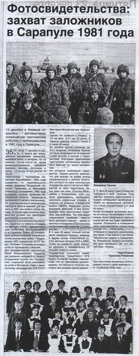 Интересно, что в те времена информация о терактах тщательно скрывалась от общественности. Поэтому в советских СМИ о событии почти не писали — только в 2000-х годах, спустя 20 лет, стали появляться первые публикации и интервью с участниками. А в 1981-м в Сарапуле царила режимная обстановка, словно в зоне ЧС.