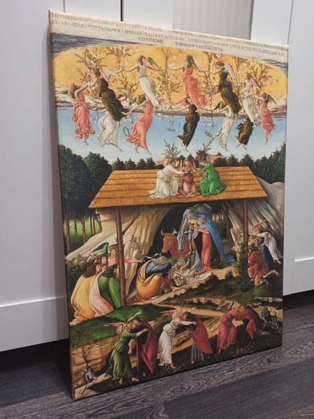 Это «Мистическое Рождество» Сандро Боттичелли (ок. 1500 г.) — одна из самых необычных его работ. Она меньше известна, чем «Весна» или «Рождение Венеры», но по напряжению и глубине, на мой взгляд, гораздо ближе к нашему внутреннему опыту. Когда я впервые увидела эту картину, меня поразило, насколько она «несобрана» и в то же время цельна. Вроде бы знакомый сюжет Рождества — пещера, Мария, младенец, пастухи, волхвы. Но если задержаться взглядом подольше, вдруг обнаруживается, что здесь не только праздник, но и апокалипсис, страх, надежда и человеческое исцеление — всё одновременно.