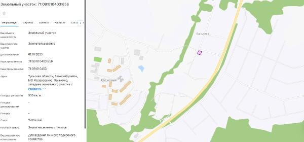 Название: продажа земельного участка из земель населенных пунктов с кадастровым номером 71:09:010403:656, площадь 550 кв