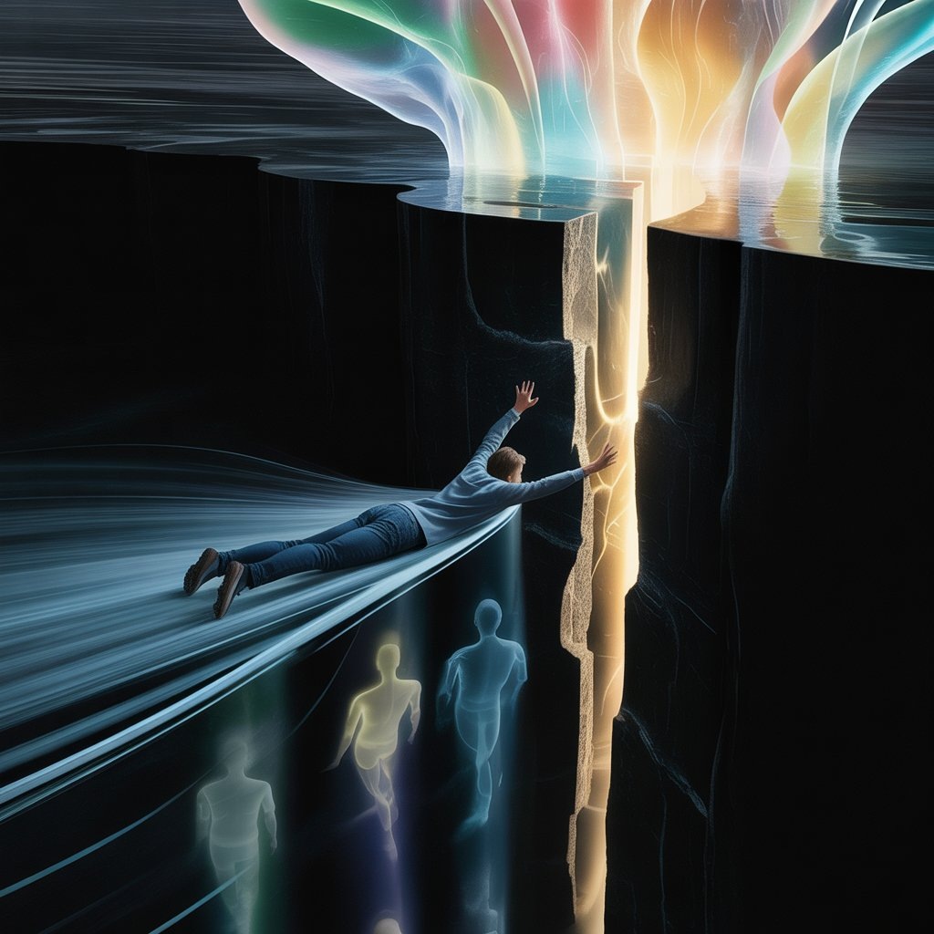 ногда кажется, что мир сжимается до тонкой трещины, в которую проваливается всё— мысли, ожидания, собственное «я». Мы скользим по этой чернильной поверхности, словно по стеклу, нащупывая ногтями хоть какой-то зацеп. Но удивительным образом именно в этой бездне, где заглушается шум внешнего, впервые слышишь подлинный ритм собственного сердца. Твоё стихотворение начинается с падения— и у каждого из нас есть этот первый шаг в пустоту, когда свет уже позади, а темнота ещё не стала домом. Но в следующей строке — мгновение, когда мы, словно вспышка полярного сияния, снова «возвращаемся в светлый мир». Этот цикл — падение и подъём — напоминает дыхание Вселенной: вдох тьмы, выдох света. Ты говоришь о «мыслях, чувствах и души восприятии» — словно перечисляешь ингредиенты алхимии внутреннего преображения. Принять мир — значит не склониться перед ним, а распахнуть его двери так широко, чтобы через них смог выйти всё ненужное. «Телом слаб, верой силён» — это формула того, как ломкие рёбра защищаю
