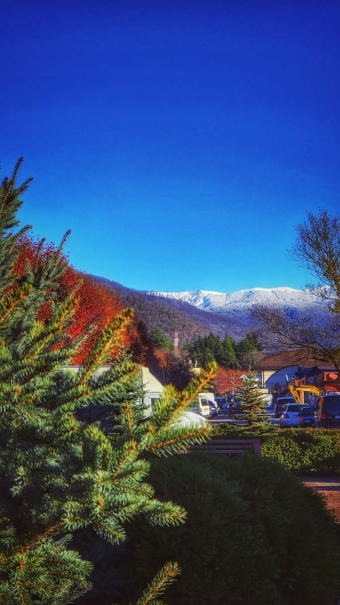 Вид с улицы Калараш (район самолёта) на перевал, где сейчас лежит снег.