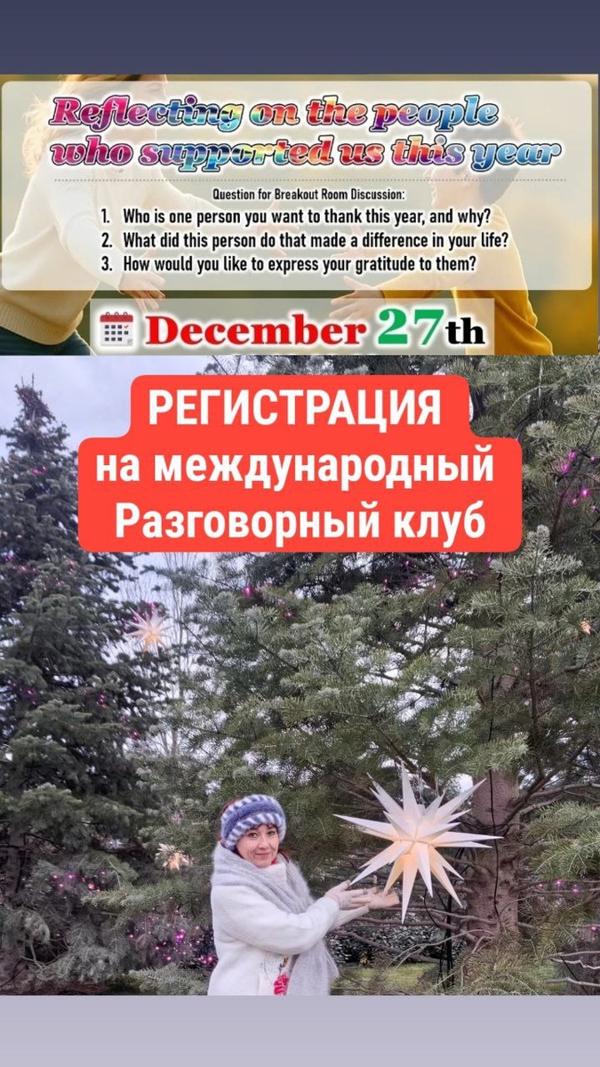 МЕЖДУНАРОДНЫЙ РАЗГОВОРНЫЙ КЛУБ 27 декабря Финальная новогодняя встреча 2025! Запись для участия в клубе. https://wa.me/79836103103 @Lara_English_exam 🍪🍪🍪🍪🍪🍪🍪🍪🍪