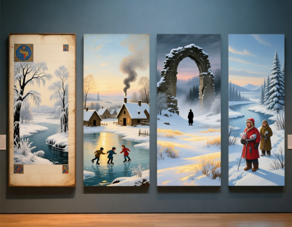 Эволюция образа зимы в искусстве — это путь от обозначения к переживанию, от символа к ощущению, от общего к личному. От условного значка «снег» на миниатюре до иммерсивных цифровых инсталляций, погружающих зрителя в виртуальную метель, искусство научилось передавать всю гамму чувств, которые дарит нам это время года: от тихой созерцательности до восторга перед мощью стихии. И пока существует смена сезонов, художники будут находить новые формы, чтобы рассказать нам эту вечную, обновляющуюся историю о холоде и тепле, о внешнем мире и внутреннем отклике.