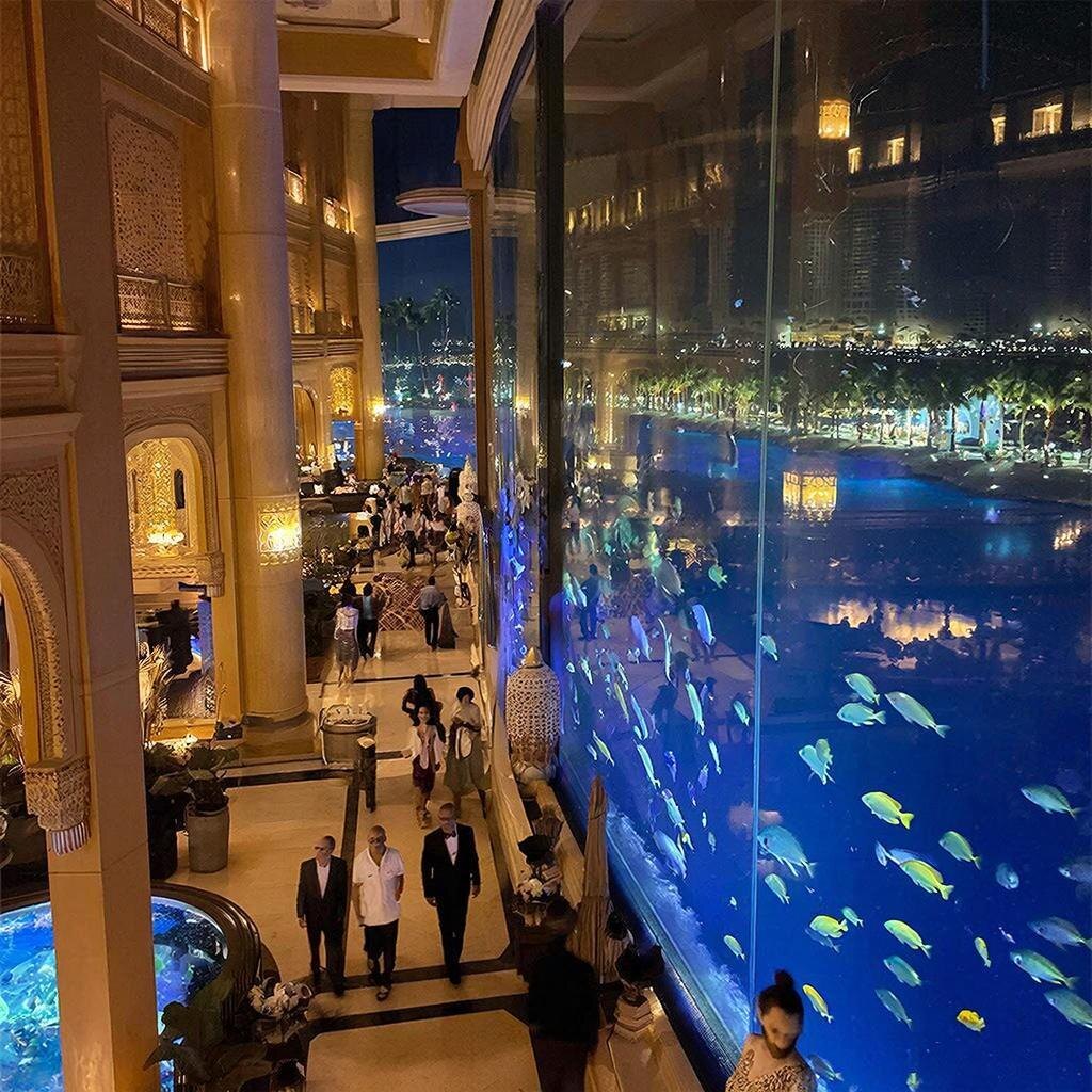 - Аквариум The Lost Chambers (стекла ресторана — часть этого аквариума).