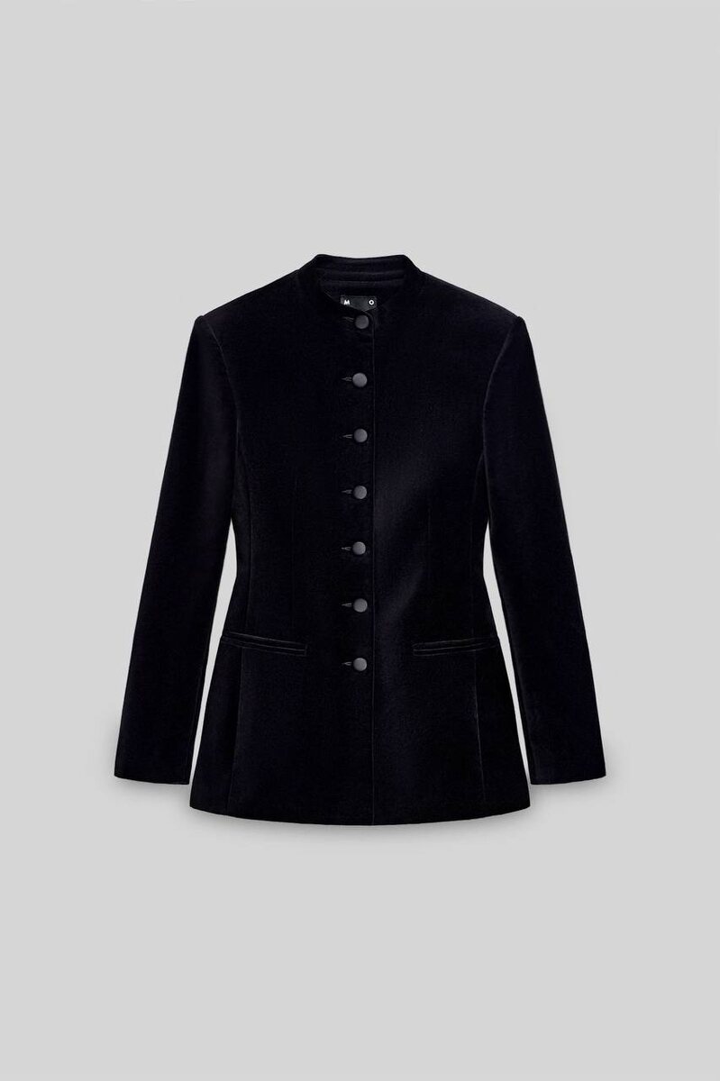🏷️ Жакет из бархатной ткани черного цвета 25.980₽ Удлиненный жакет полуприлегающего силуэта на подкладке. Выполнен из хлопкового бархата. Воротник стойка, карманы с листочкой, втачной рукав со шлицей и обтяжными пуговицами. Застежка жакета на пуговицы обтяжные атласной тканью. Глубокий черный бархат из хлопка, с плотным ворсом. Держит форму и эффектно контрастирует с сатиновым блеском на обтяжных атласом пуговицах 😍