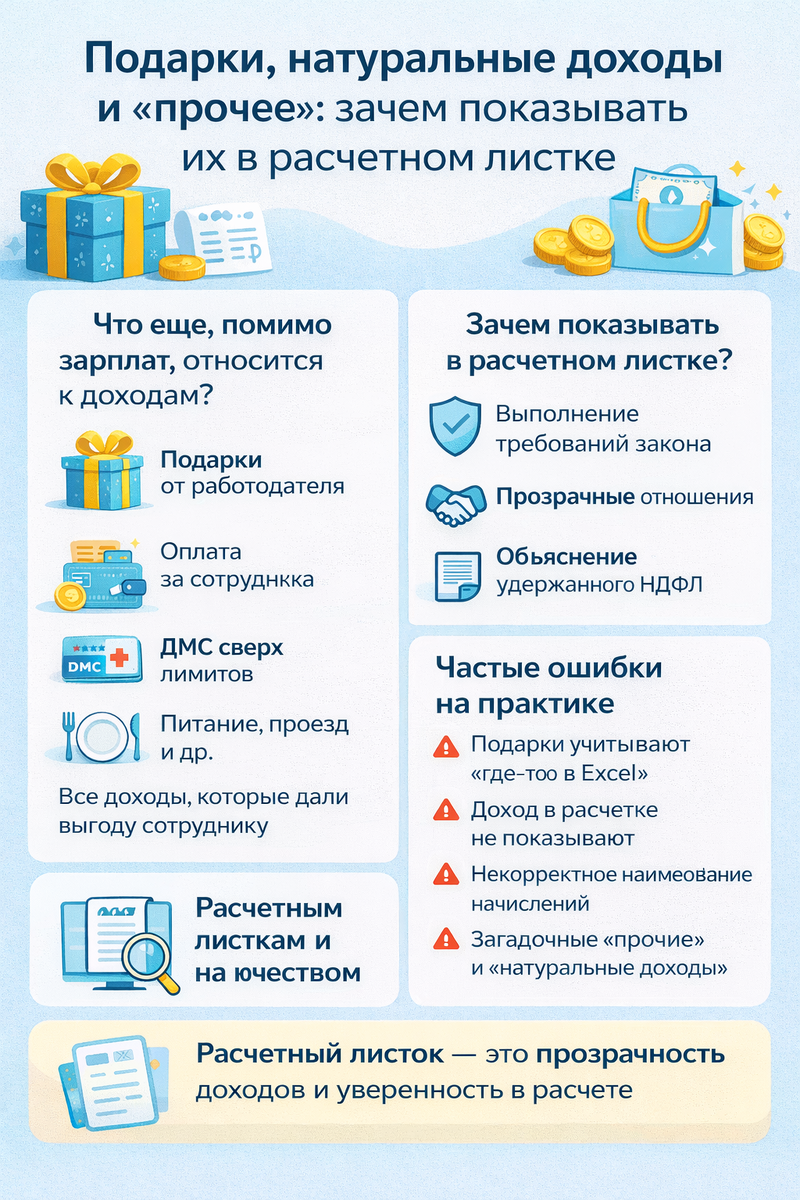 Подарки, натуральные доходы и «прочее»: зачем показывать их в расчетном листке
