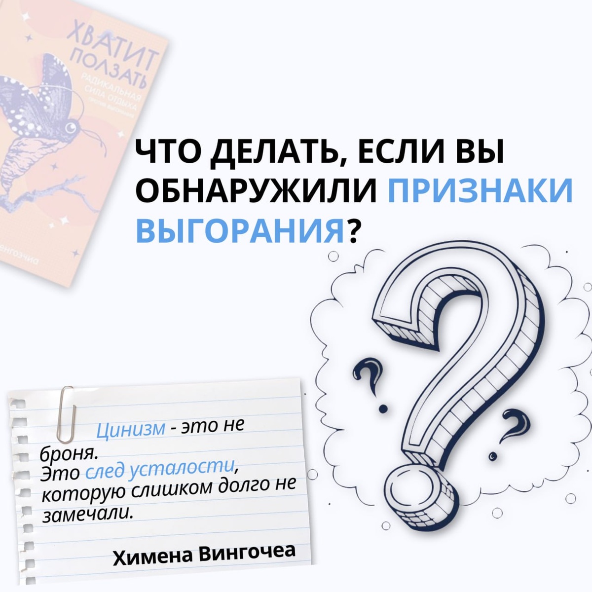 Что делать, если вы обнаружили признаки выгорания??? Вы прошли тест - и видите высокий уровень по одному или нескольким показателям. Это не ошибка и не слабость. Это точка правды. Момент, когда психика перестаёт «держать форму» и начинает говорить с вами напрямую. Мы много лет исследуем феномен выгорания и уверенно утверждаем: это не разрушение, а защитная реакция системы, которая слишком долго функционировала на пределе. 🟦 Эмоциональное истощение Когда эмоции угасают, а даже радостные события не приносят тепла - это не лень и не апатия. Это обратная сторона гиперответственности. Вы слишком долго были «включены» в жизнь других, игнорируя собственные потребности. Что помогает: ⚫️Снижайте когнитивную и эмоциональную нагрузку: разрешите себе не быть продуктивным. ⚫️Восстанавливайте базовые ритмы: сон, вода, еда, дыхание. ⚫️Практикуйте «мягкое присутствие» - короткие моменты осознанного отдыха без цели. ⚫️Психика восстанавливается не от отдыха как такового, а от разрешения быть несовер