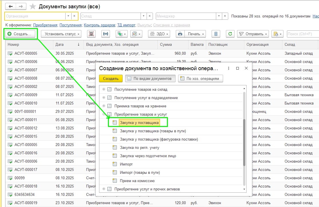 📦 Закупка товаров в Управление торговлей 11.5 Что нужно для начала работы? ✔ Минимум одного поставщика (Закупки - НСИ закупки - Поставщики) ✔Решить, нужны ли заказы (НСИ и администрирование - Настройка разделов - Закупки - «Заказы поставщикам») Как оформить поступление? 1️⃣ Закупки - Документы закупки (все) - Создать - Приобретение товаров и услуг 2️⃣Выберите тип: · Закупки у поставщика 3️⃣Заполните: · Основные данные (поставщик, договор, склад) · Табличную часть «Товары» 4️⃣Проведите и закройте Если используете заказы: 📍 Сначала создайте «Заказ поставщику» 📍На его основании создайте «Приобретение товаров» - данные подтянутся автоматически Преимущества заказов: ▪ Контроль ожидаемых поставок ▪Автозаполнение документов поступления ▪Сравнение плановых и фактических данных Подробнее в нашей инструкции: https://clck.ru/3QqZdq