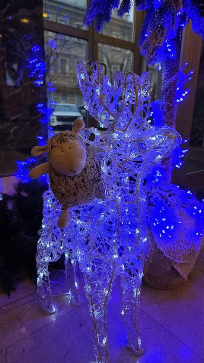 В Новотель Москва Центр не стали устанавливать одну большую ёлку, как это делают все. Решили декорировать точечно, милыми скульптурами и игрушками. Овце Борису нравится, есть с кем селфи делать😉 А еще, вдогонку подарили целый набор фирменных сладостей! Несмотря на жесточайшую диету перед отпуском, Овца Борис отказываться не стал. Вы только взгляните на эту красоту! #елкиВотелях2026 #novotelmoscowcenter