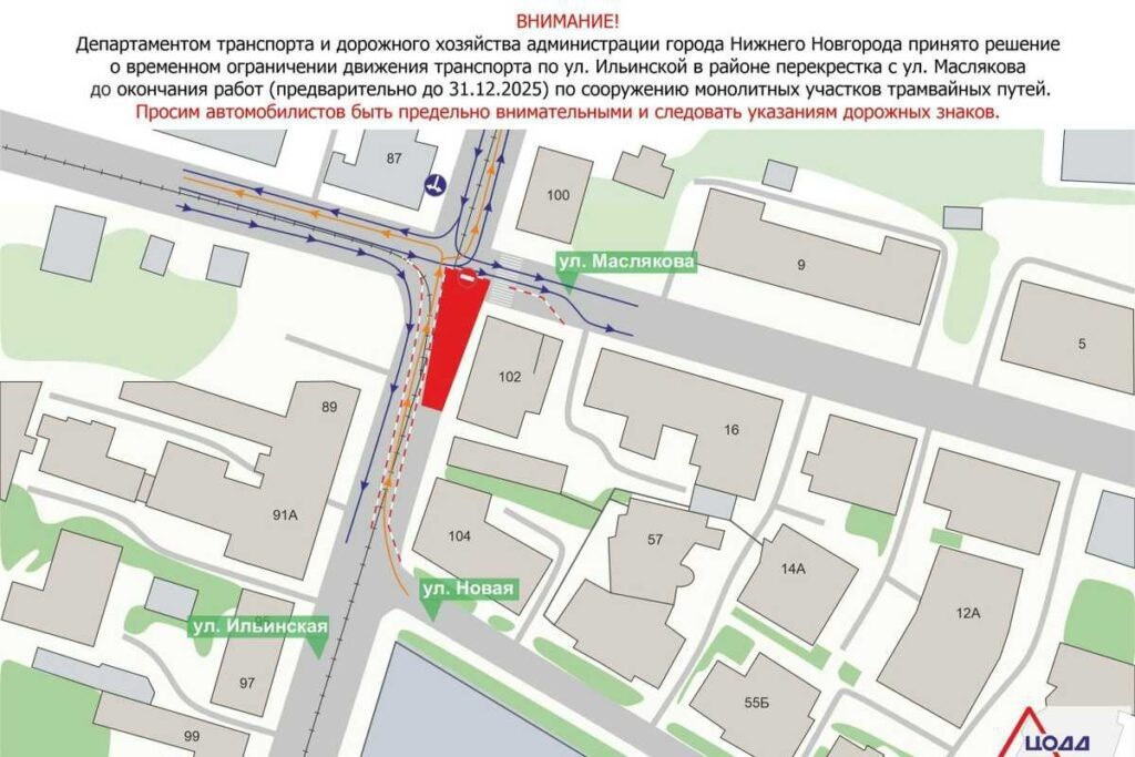 Проезд транспорта временно ограничат на участке улицы Ильинской в Нижнем Новгороде. Запрет будет действовать до окончания работ – предварительно, до 31 декабря 2025 года. Об этом сообщили в мэрии. Движение закроют в районе перекрестка с улицей Маслякова. До конца декабря рабочие планируют завершить сооружение монолитных участков трамвайных путей. Проезд по Маслякова в сторону площади Горького сохранится в одностороннем направлении. В остальных случаях на перекрестке будет доступно движение по одной полосе. Водителей настоятельно просят следовать указаниям дорожных знаков. Ранее мы писали, что парковку транспорта ограничат на площади Горького с 6 января 2026 года.