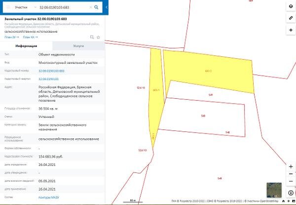 Название: Российская Федерация, Брянская область, Дятьковский муниципальный район, Слободищенское сельское поселение, площадью 36 504 кв.м
